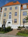 "Motivet forestiller kulturskolens frontparti med silhuetten af Tal Rs skulptur ’Bue og pil’