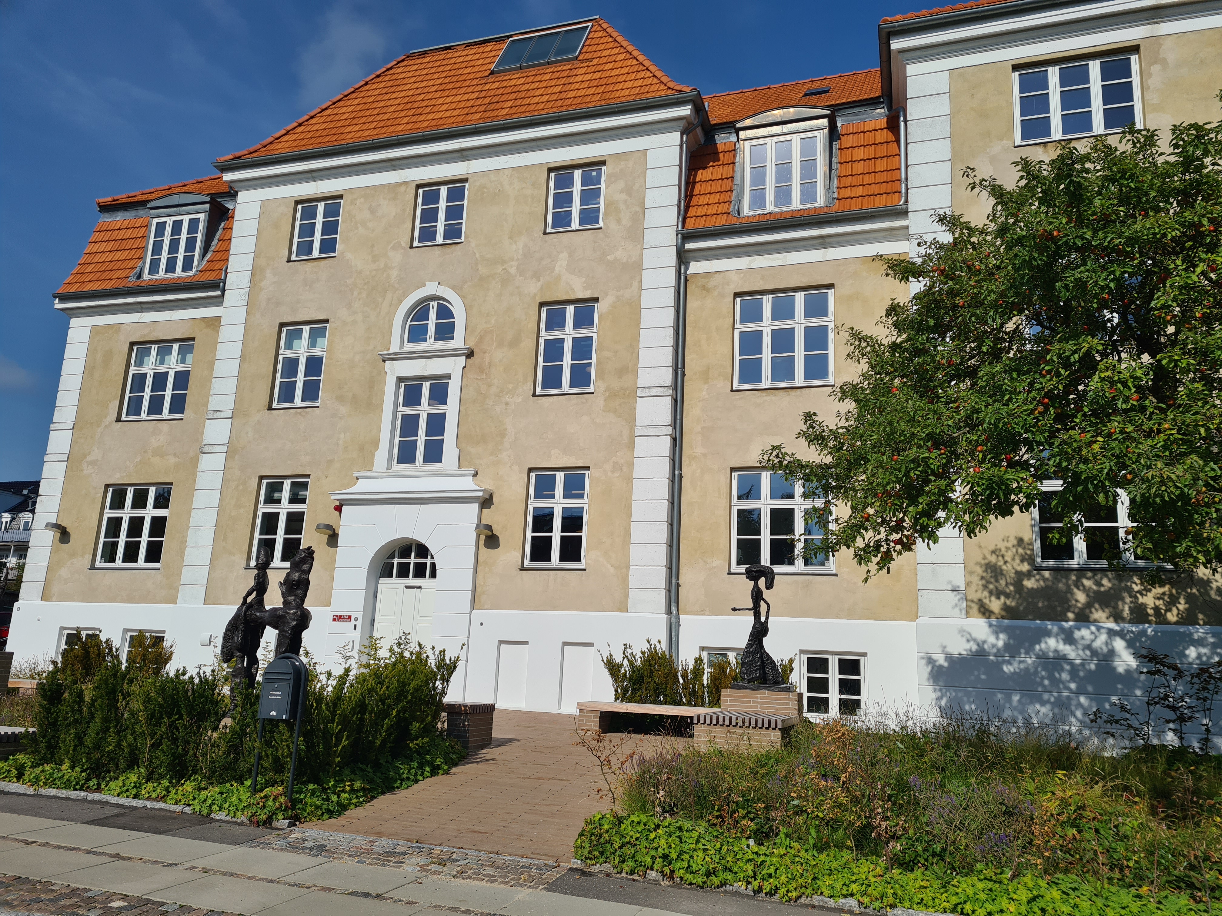 "Motivet forestiller kulturskolens frontparti med silhuetten af Tal Rs skulptur ’Bue og pil’